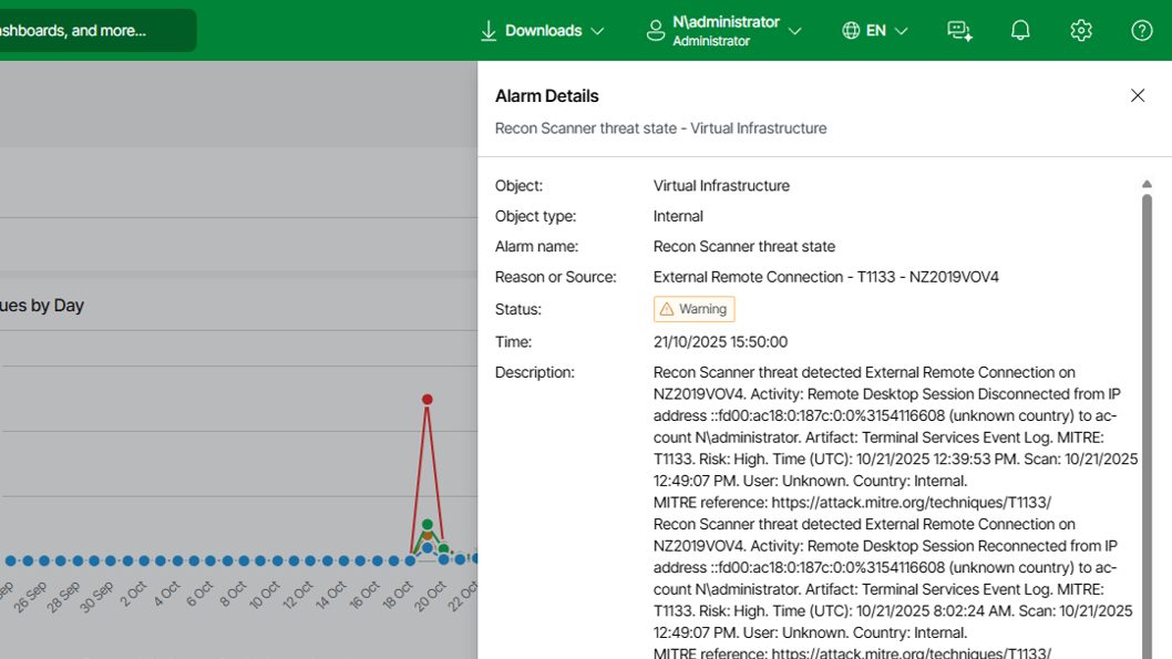 Now you can drill down into the affected workload, review context and trigger notifications or remediation actions. This provides a single place to view, triage and act on Recon findings, helping improve overall data resilience.