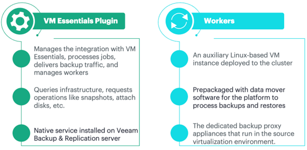 - Workers: Lightweight proxy VMs that are responsible for data movement, compression, and encryption.