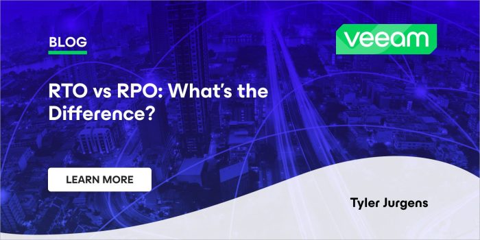 Understanding the difference between RPO vs. RTO and the role each metric plays in formulating your disaster recovery plan is critical. Knowing how much, if any, data loss is acceptable and how long you can tolerate a service being unavailable helps inform your decision-making when it comes to backup solutions and your recovery workflow.