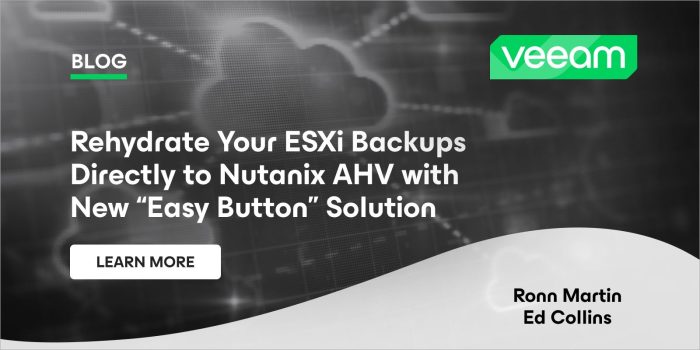 Until recently, keeping your VMware ESXi backups in place while migrating to Nutanix AHV meant maintaining a VMware license for a staging pod on standby just in case a need arises where an old backup must be rehydrated. This extra gear and licensing would need to be deployed and maintained for as long as your backups remain within the scope of your compliance obligations.