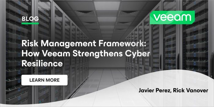 Yet even the strongest framework is incomplete without data resilience, or the ability to protect, detect threats, and recover access to critical information no matter what happens. That’s where Veeam strengthens the equation. By mapping our capabilities directly to the functions of a risk management framework, we help organizations reduce risk, ensure business continuity, and meet compliance requirements.