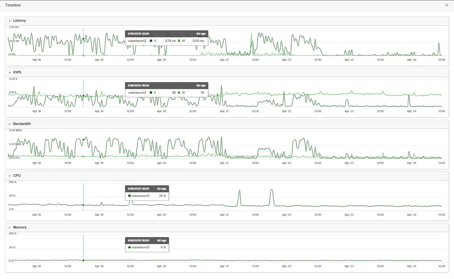 The next phase is to engage with VM and application owners. Pure1’s usage timelines (as shown in Figure 5) provide compelling evidence to facilitate this conversation. Once owners see the consistent underutilization, they are more likely to agree to rightsizing their VMs.