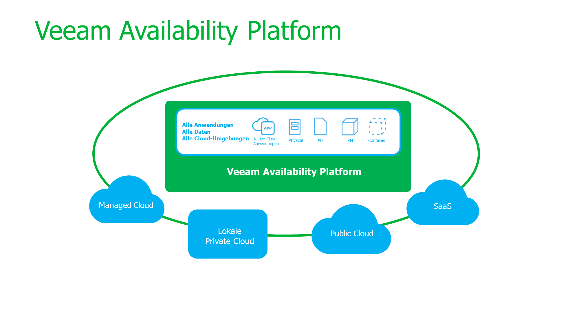 Unternehmen wie Ihres setzen für die Digital Transformation auf Veeam. Die Veeam Availability Platform for the Hybrid Cloud liefert die nächste Generation von Availability for the Always-On Enterprise™ und ermöglicht Unternehmen jeder Größe zuverlässige Verfügbarkeit für alle Anwendungen und alle Daten in jeder beliebigen Cloud-Infrastruktur – mit diesen Vorteilen: