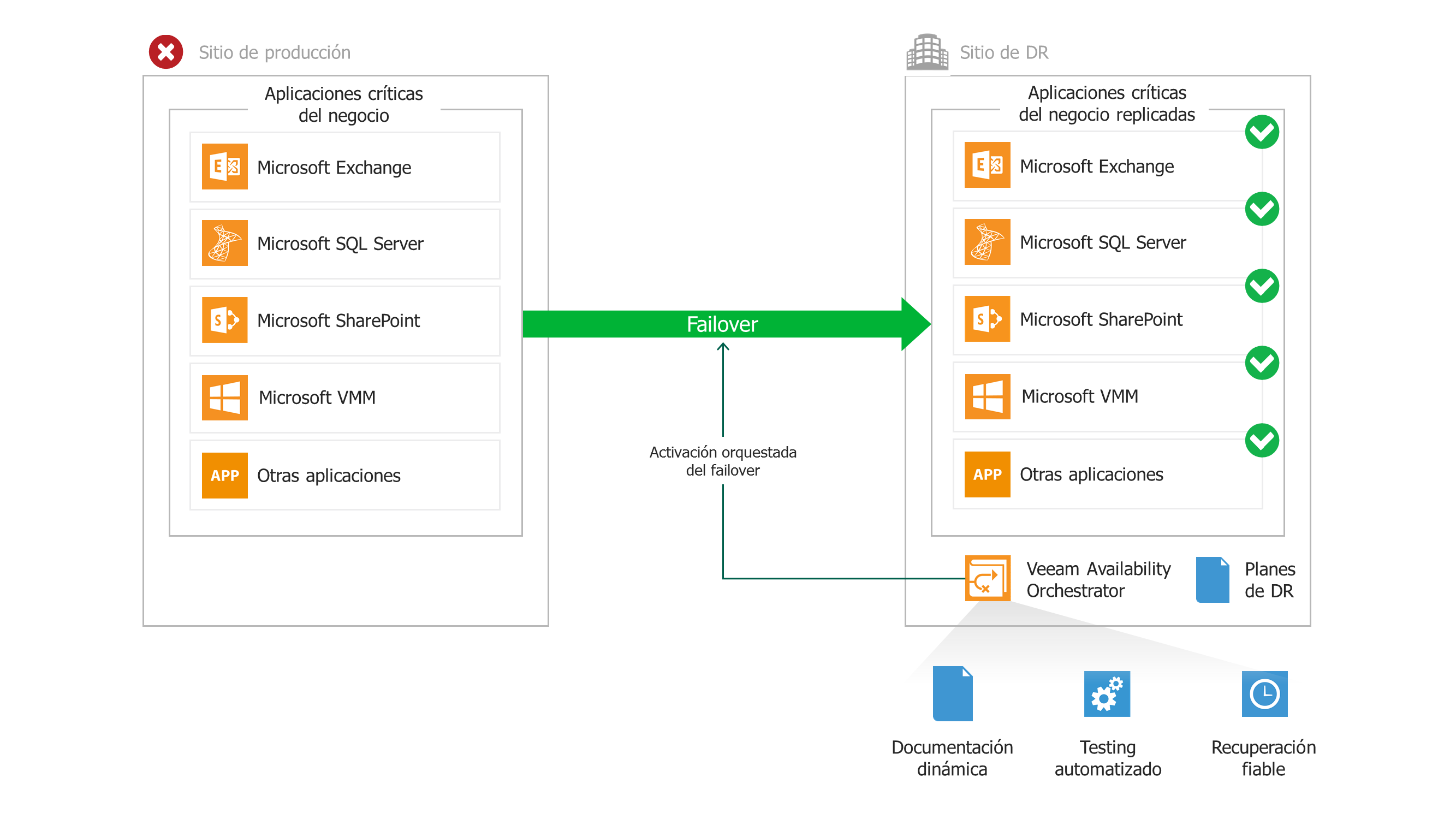 Con Veeam Availability Orchestrator, los usuarios pueden asegurar la continuidad de sus servicios de TI a cualquier escala, con orquestación ampliable de la recuperación, demostración de la viabilidad y capacidad de recuperación con pruebas automatizadas y garantía de cumplimiento de requisitos regladores mediante informes rigurosos y documentación práctica. Más información