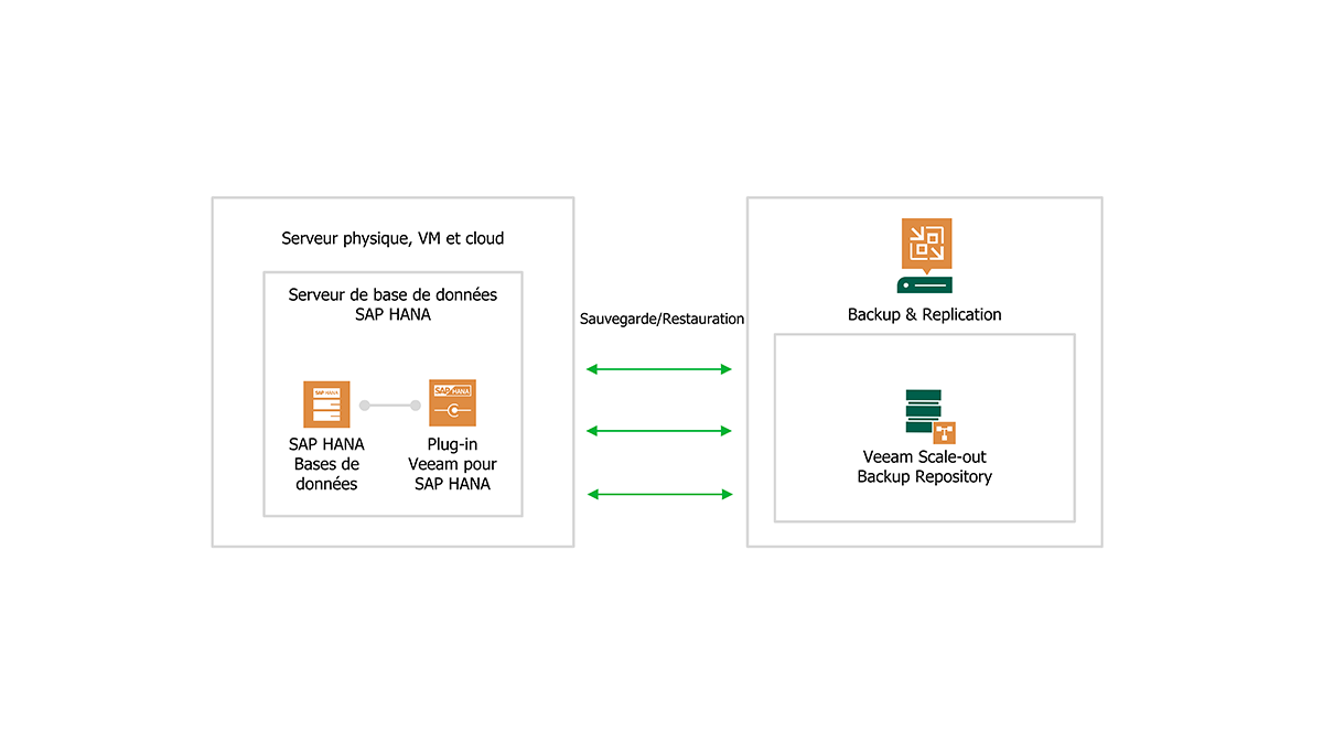 Solution de sauvegarde et de restauration certifiée SAP de Veeam®, Veeam Plug-in for SAP HANA offre aux clients de l’entreprise une intégration totalement transparente de leurs sauvegardes natives effectuées avec SAP HANA BACKINT avec la solution phare Veeam Backup & Replication™. Ce partenariat permet aux administrateurs SAP de sauvegarder leur environnement SAP HANA stratégique, fortement dépendant des performances, pour mieux satisfaire les exigences élevées de la disponibilité des applications et des données.