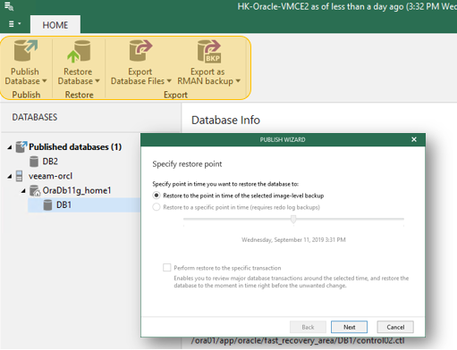 Exportation de bases de données Oracle directement depuis vos sauvegardes Veeam.