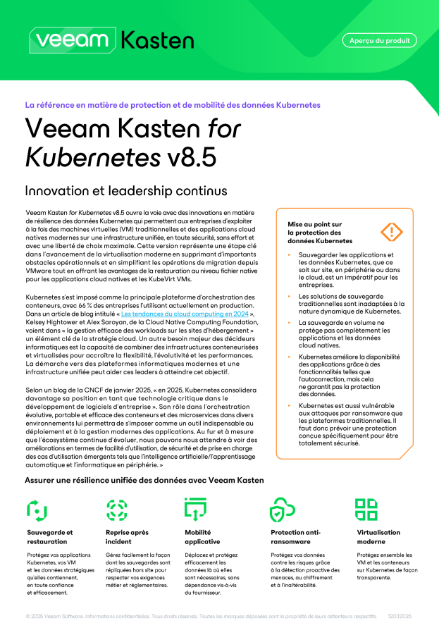 Nouveautés: Veeam Kasten for Kubernetes v8.5