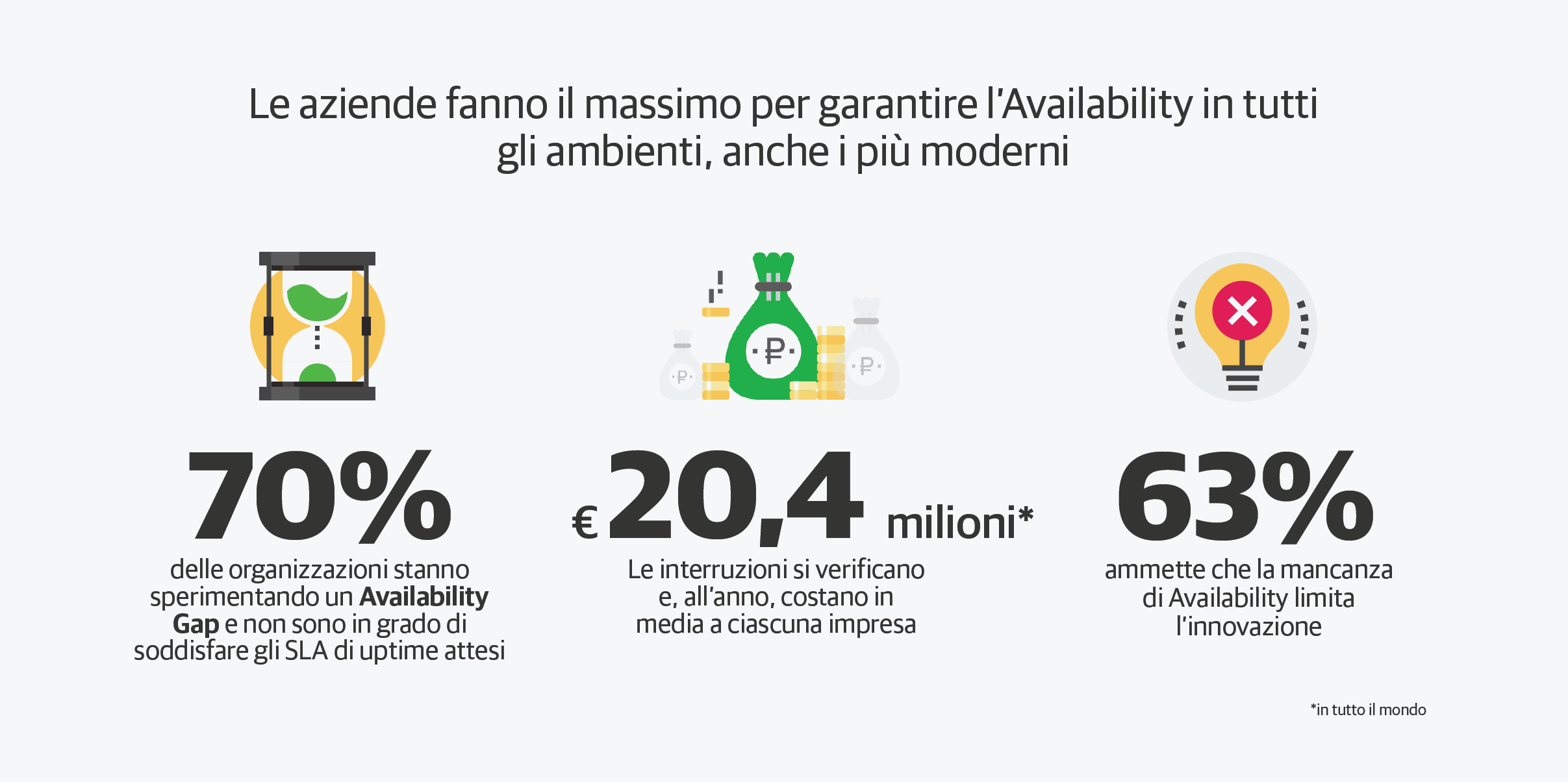 Il ritmo frenetico dell’innovazione tecnologica costringe i mondi fisico e digitale a scontrarsi inevitabilmente e a trasformare il modus operandi delle aziende nel tuo settore. La trasformazione digitale può determinare l’operatività o l’inattività della tua azienda. Perché, nel mondo digitale, i clienti si aspettano l’Availability 24.7.365.