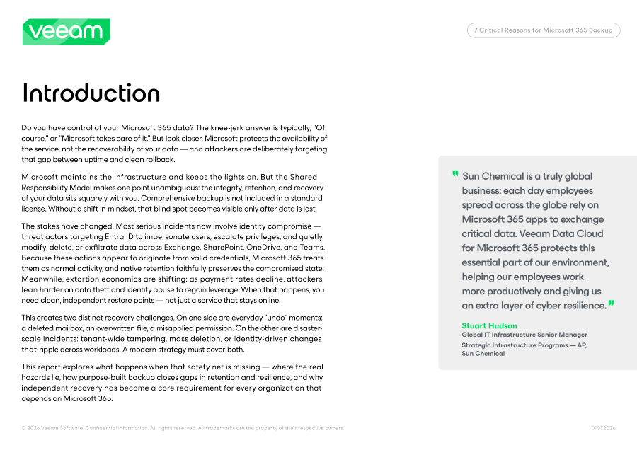Ian Findling is a Technical Writer and Content Strategist at Veeam Software, responsible for cross-campaign content creation and strategy, including Microsoft 365. He has a passion for writing, working cross-functionally throughout the company to support and bring forward the many stories and successes of Veeam’s talent.