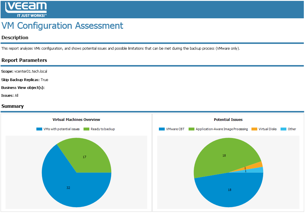 | Infrastructure Assessment Reports for backup | | | Assessment reporting designed to verify your Veeam Backup & Replication installation meets all known best practices. |